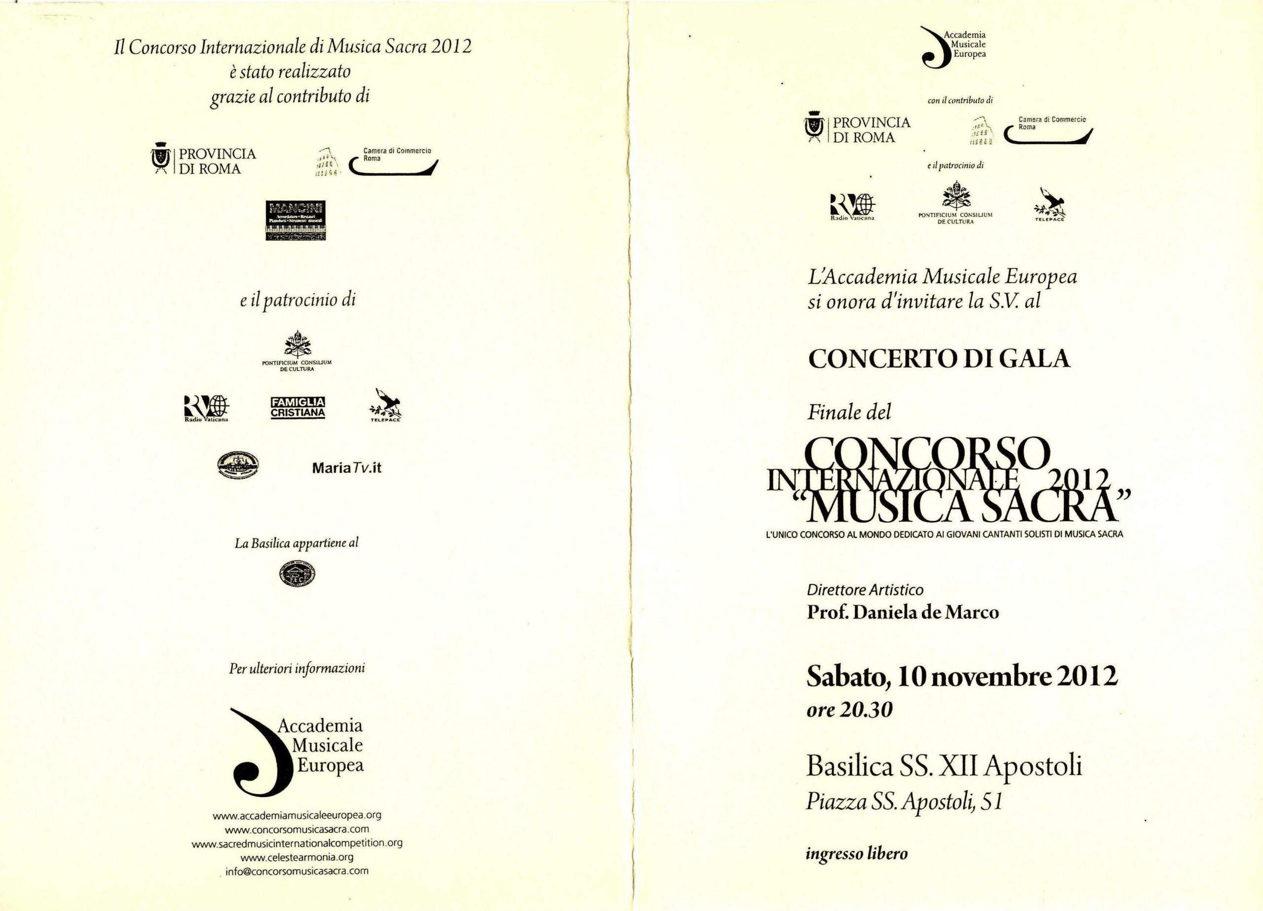 Anna Rogaczewska (sopran) - Koncert Galowy - Finał XII Międzynarodowego Konkursu Musica Sacra (2012) - Bazylika pw. św. XII Apostołów - (Rzym, Włochy) - str. 1