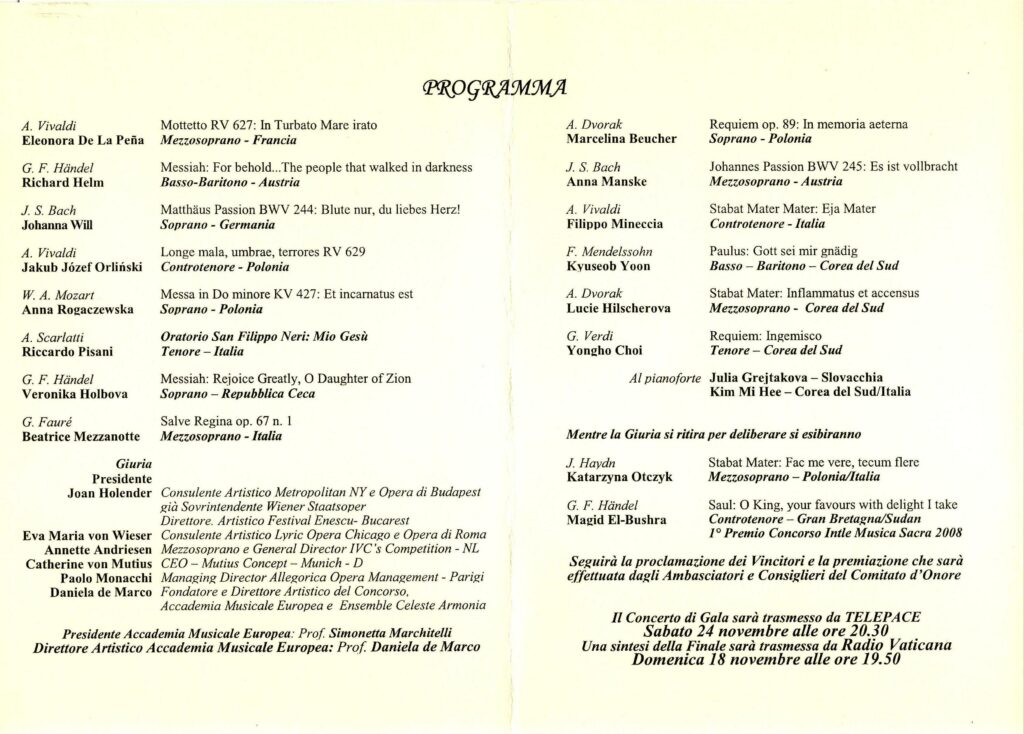 Anna Rogaczewska (sopran) - Koncert Galowy - Finał XII Międzynarodowego Konkursu Musica Sacra (2013) - Bazylika pw. św. XII Apostołów - (Rzym, Włochy) - str. 2