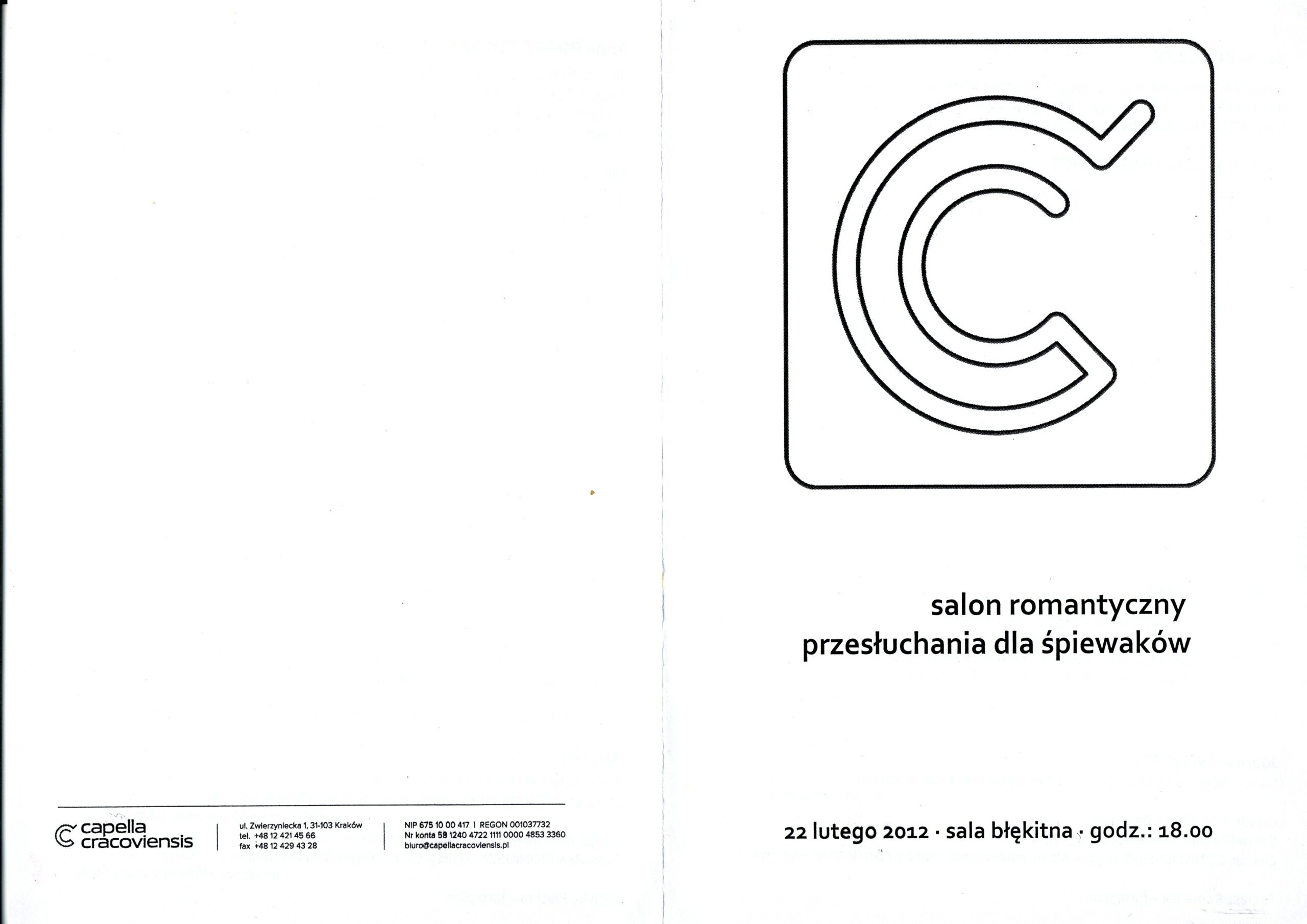 Anna Rogaczewska (sopran) - Koncert z cyklu Salon Romantyczny (2012) - przesłuchania dla śpiewaków - Capella Cracoviensis - (Kraków, Polska) - str. 1