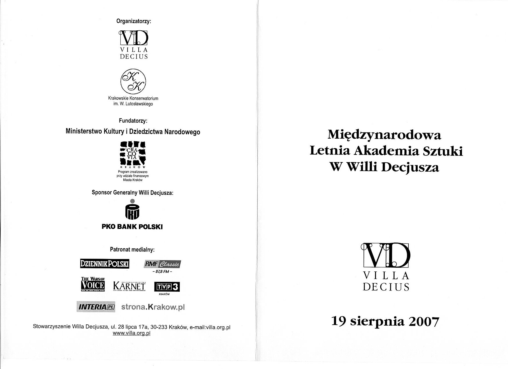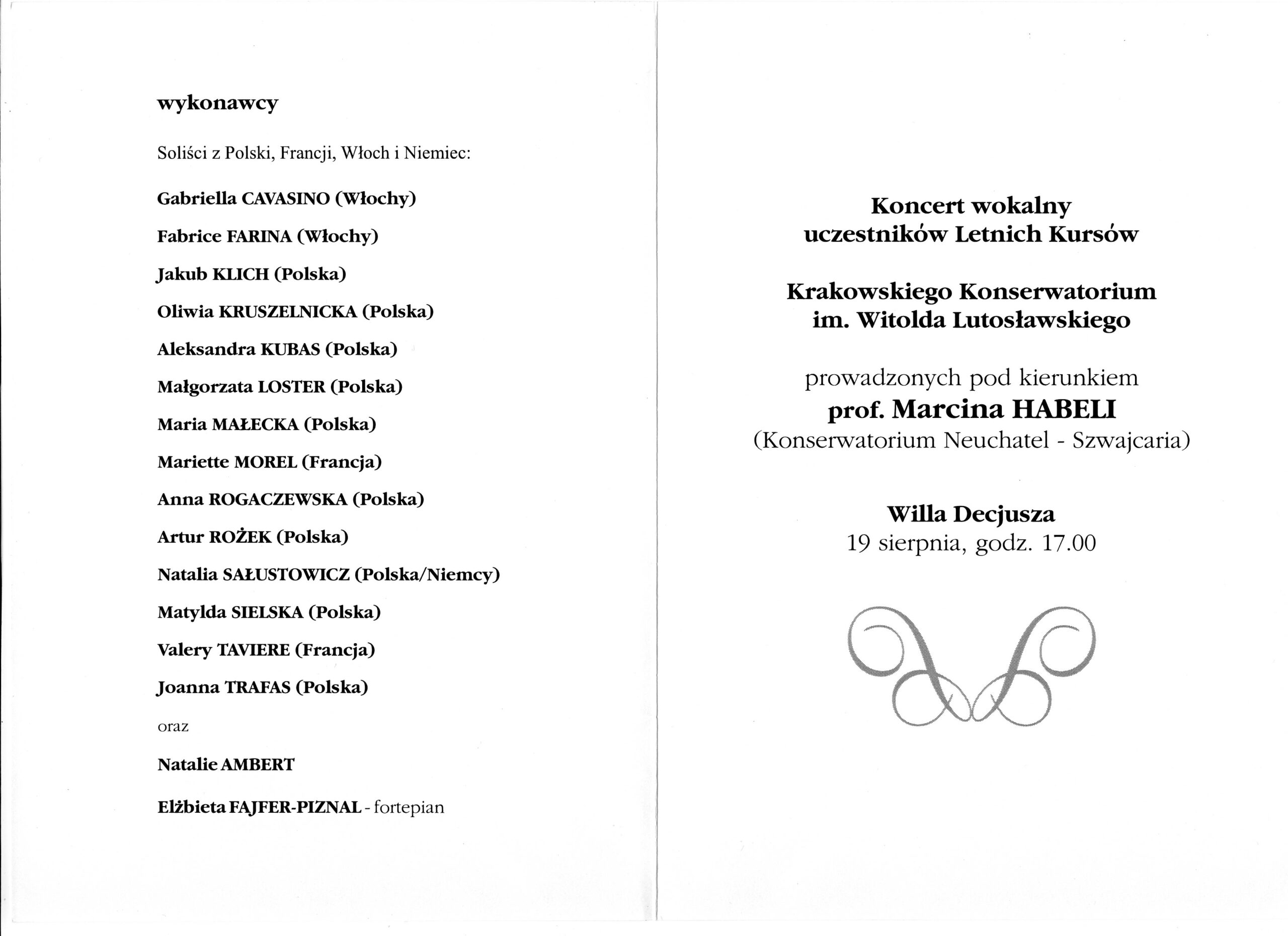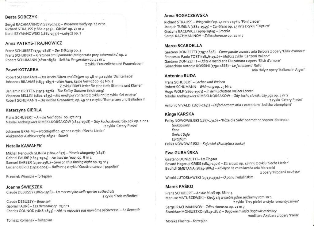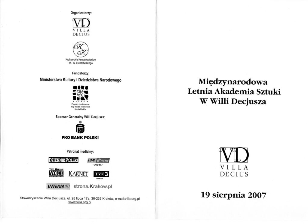 Anna Rogaczewska (sopran) - Koncert w ramach Międzynarodowej Letniej Akademii Sztuki (2007) - Willa Decjusza - (Kraków, Polska) - str. 2