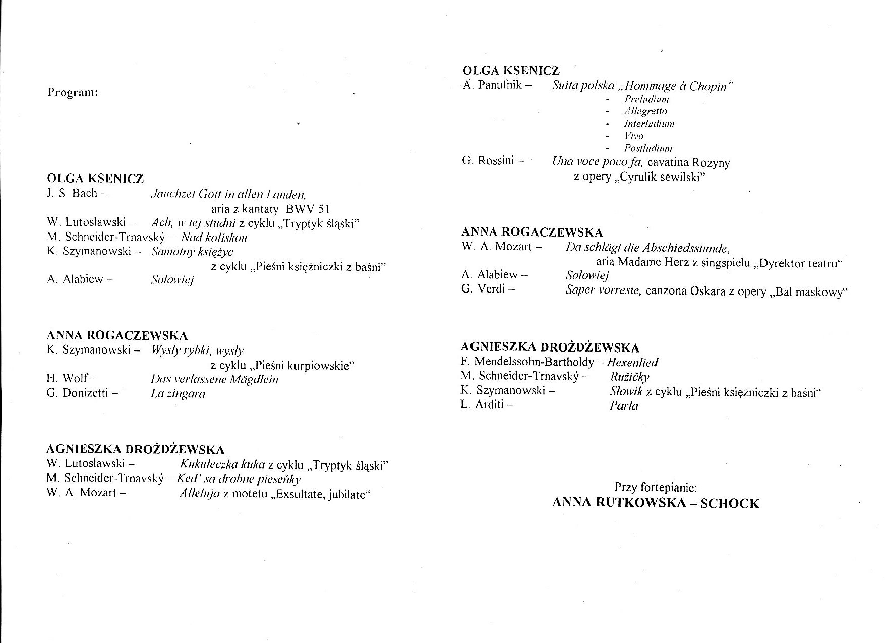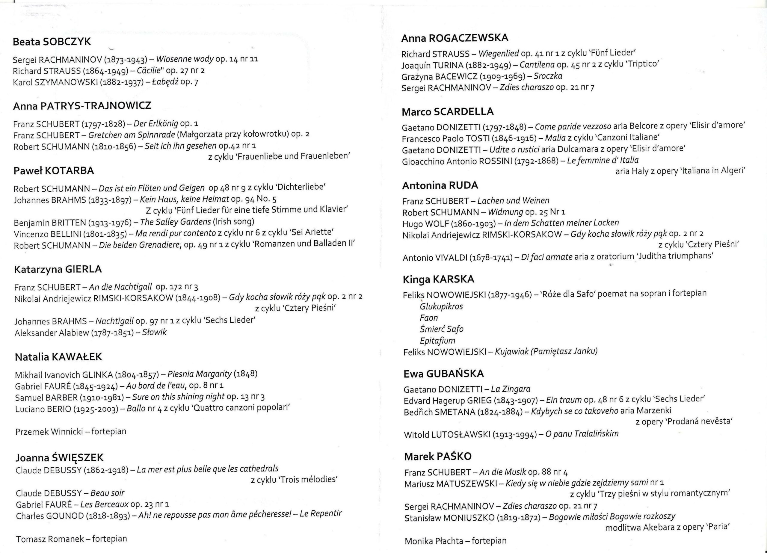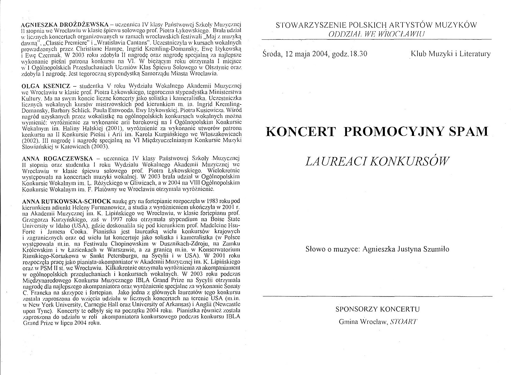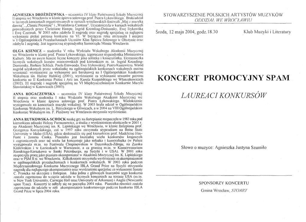 Anna Rogaczewska (sopran) - Koncert Promocyjny SPAM z cyklu Laureaci Konkursów (2004) - Klub Muzyki i Literatury - (Wrocław, Polska - str. 2)